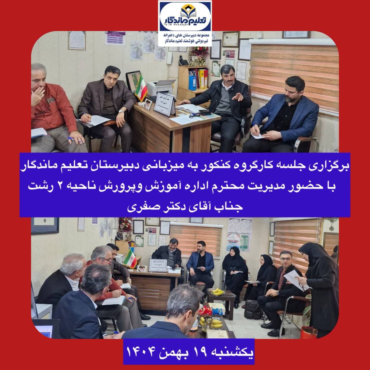 این نشست با حضور ارزشمند جناب صفری، مدیریت محترم آموزش متوسطه ناحیه ۲، و کارشناسان مسئول محترم آموزش متوسطه، همراه بود. در این جلسه، راهکارهای علمی و اجرایی برای ارتقای کیفیت آموزش و برنامهریزی دقیق دانشآموزان در مسیر موفقیت کنکور مورد بررسی قرار گرفت.