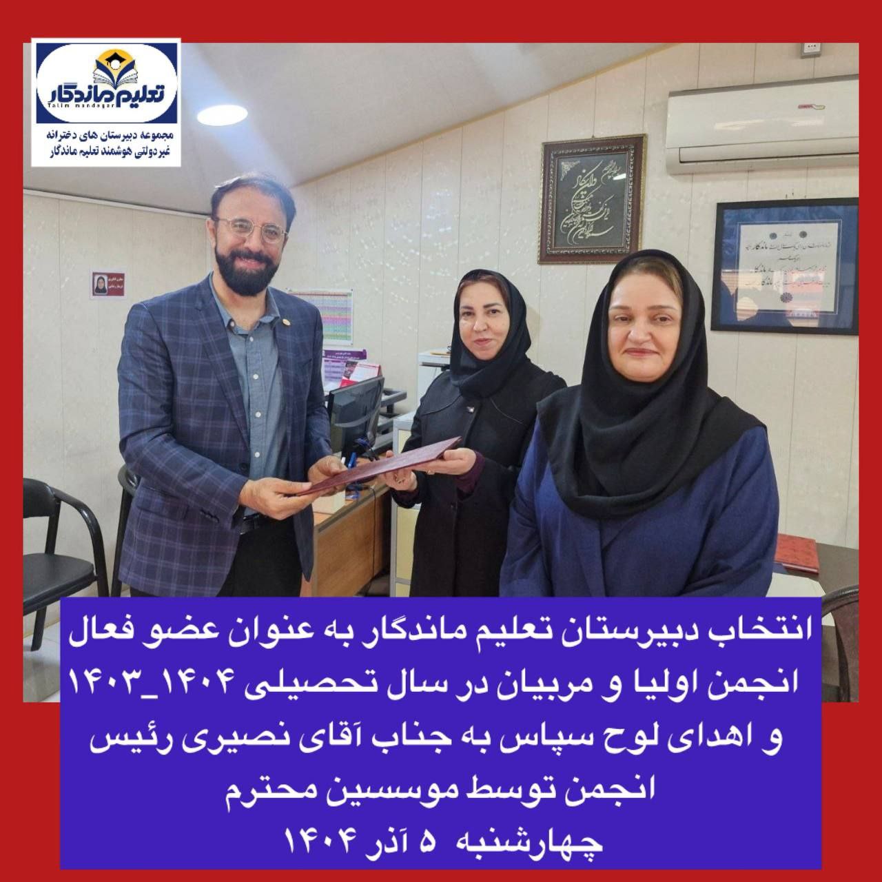 🌱 انجمن اولیا و مربیان، به عنوان پل ارتباطی میان خانوادهها و مدرسه، نقش مهمی در همافزایی و تصمیمگیریهای آموزشی دارد. حضور فعال دبیرستان تعلیم ماندگار در این انجمن، نشاندهندهی اهتمام جدی این مجموعه به مشارکت اجتماعی و تربیتی است.